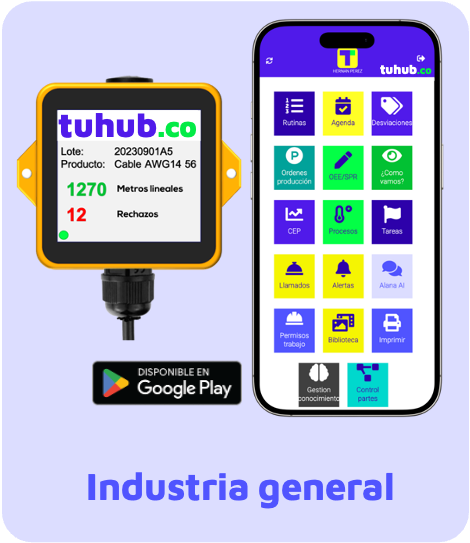 TUhub es un SaaS industrial en la nube que integra IoT, MES, Apps, Visión Artificial e Inteligencia Artificial para transformar el control de piso.